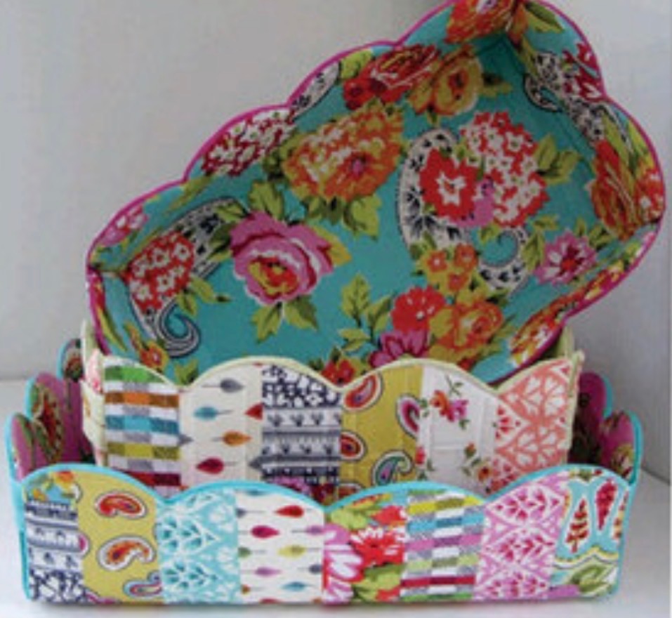 YOU’LL EXPLORE SIMPLE CONSTRUCTION TECHNIQUES THAT CREATE THE DISTINCTIVE SCALLOPED EDGE, RESULTING IN A BASKET THAT IS BOTH DECORATIVE AND USEFUL. PERFECT FOR HOLDING TREATS, NAPKINS, SEWING NOTIONS, OR SMALL TREASURES, THIS PROJECT IS A DELIGHTFUL WAY TO SHOWCASE SEASONAL FABRICS.