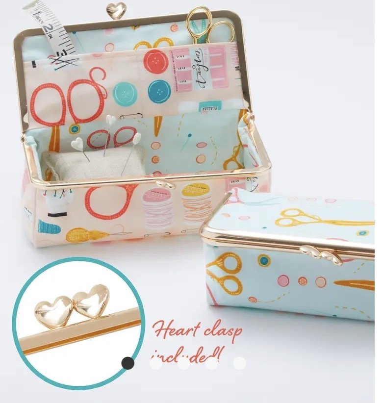 FEATURING A BEAUTIFUL HEART-SHAPED KISS CLASP. IN THIS CLASS, YOU’LL LEARN HOW TO MAKE A QUICK AND EASY FABRIC BOX THAT’S PERFECT FOR HOLDING SEWING NOTIONS, SMALL TREASURES, OR GIFTING TO SOMEONE SPECIAL.